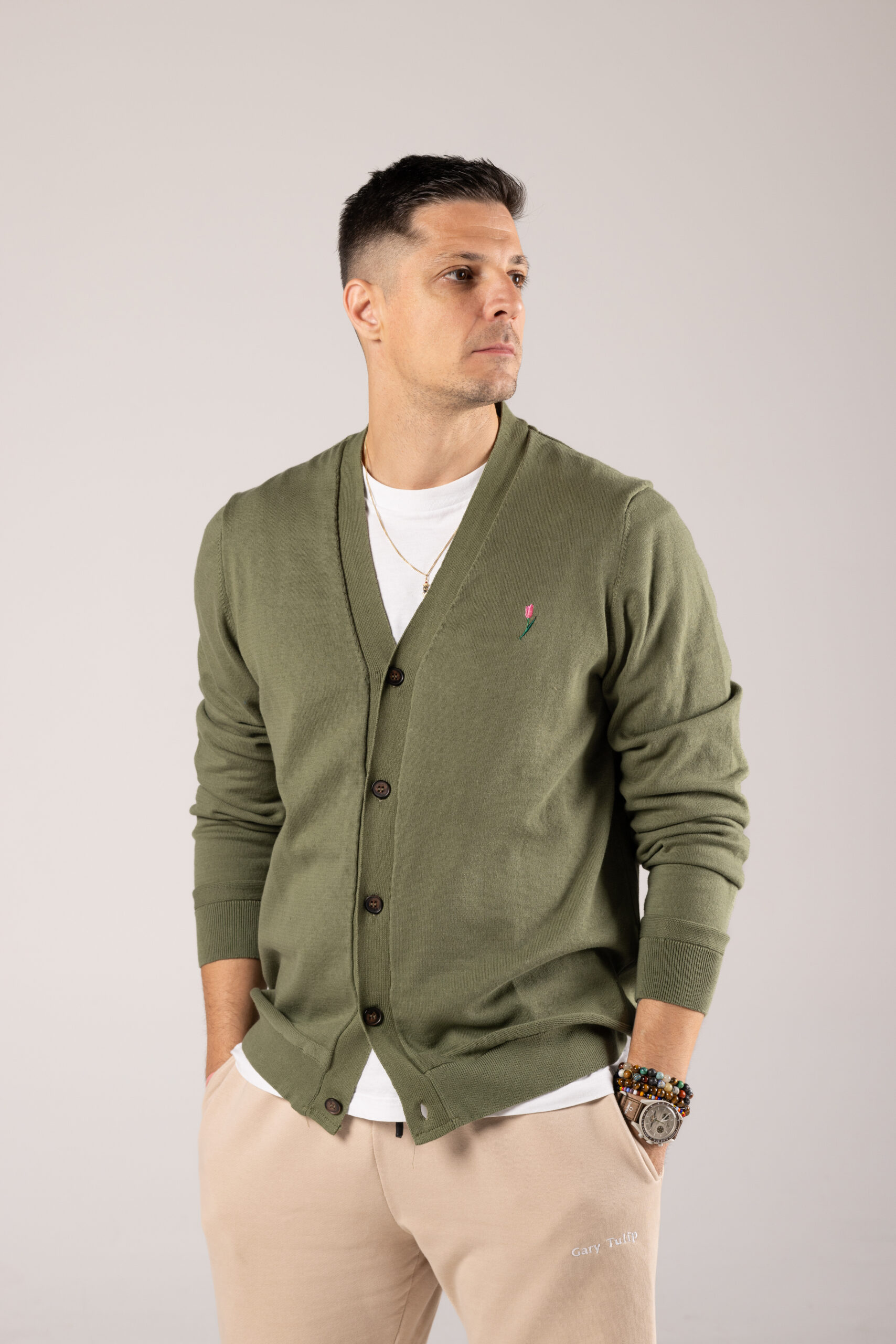 Be the first to review “Gary Tulip Tulip Cardigan Subtle Logo”