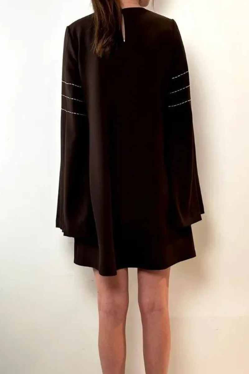 Brown mini dress with long sleeves.