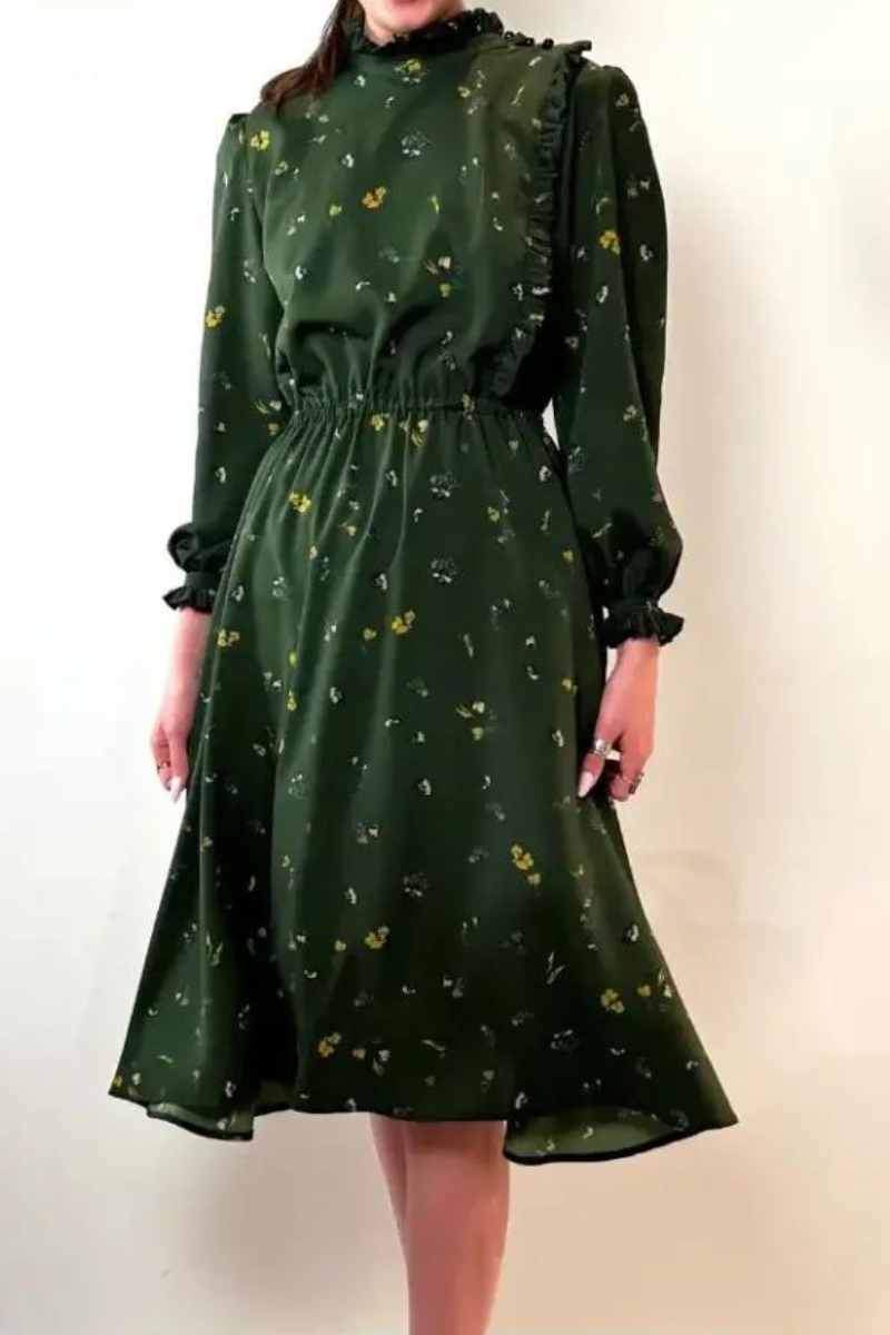 Green romantic flower print dress.