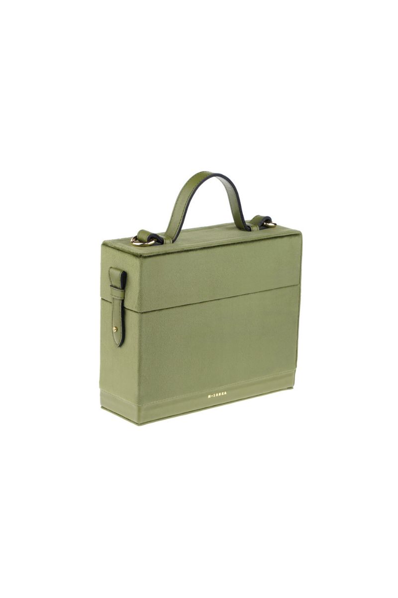 M-ishka Box bag is a handmade plush bag with a specific side opening.