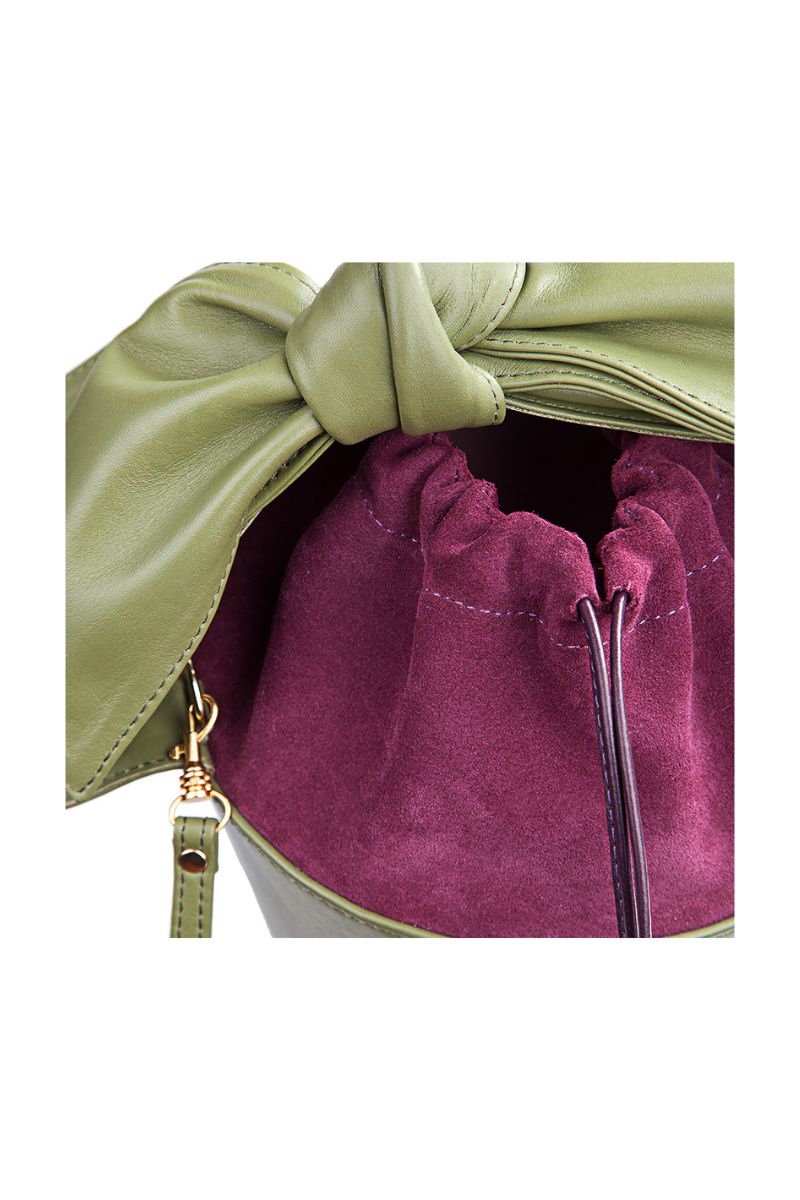 M-ishka Bucket bag is a handmade leather bag with a unique bow and a specific combination of smooth leather and velor.