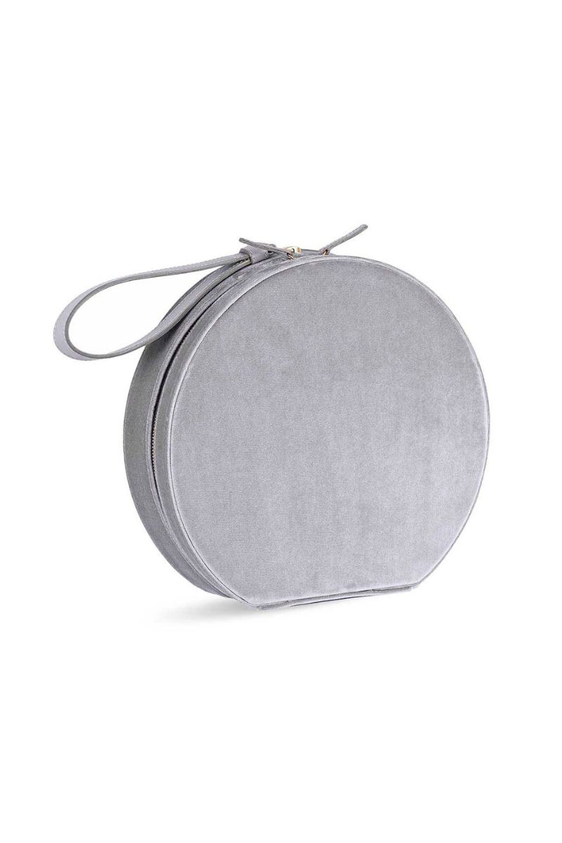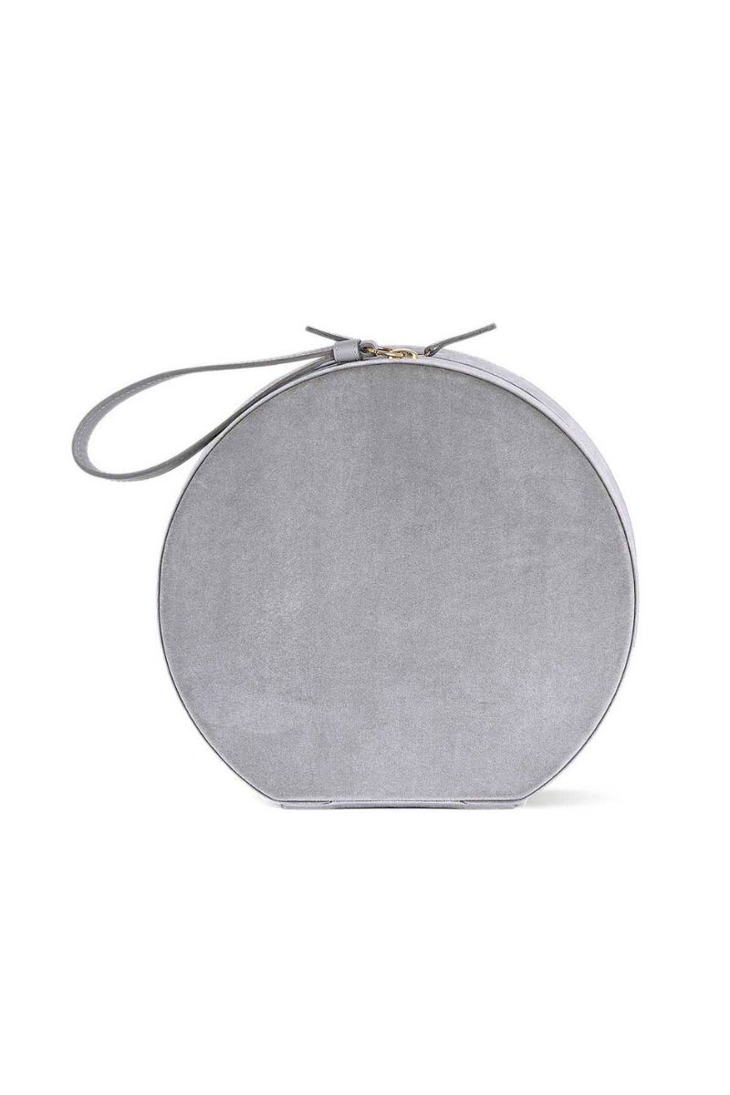 The M-ishka Train case bag is a handmade plush bag with a leather handle.