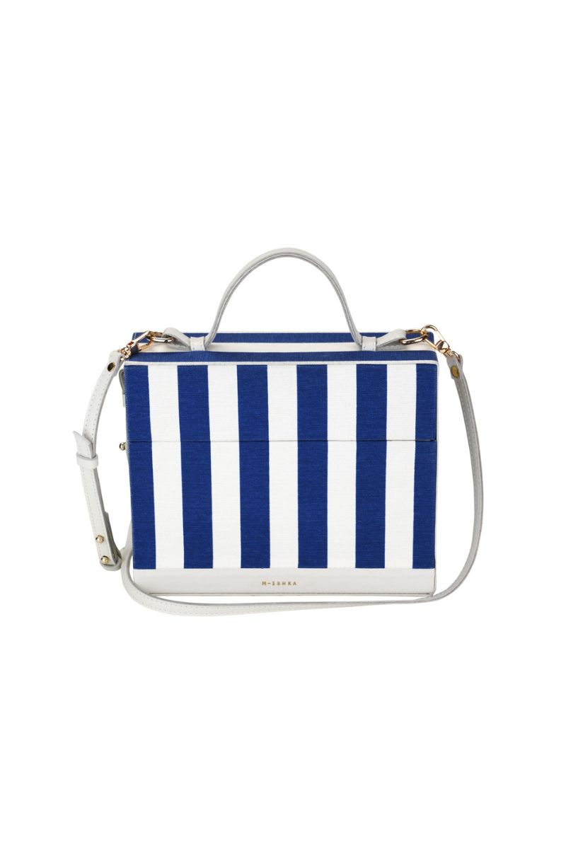 M-ishka ‘Love in Portofino’ Box bag is a handmade plush bag with a specific side opening.