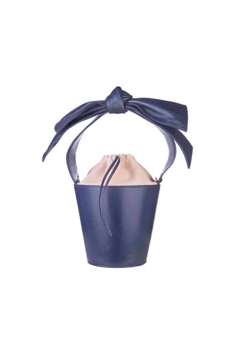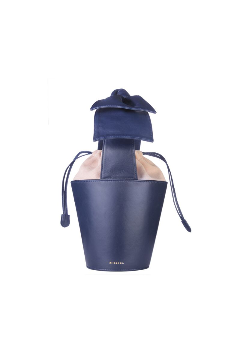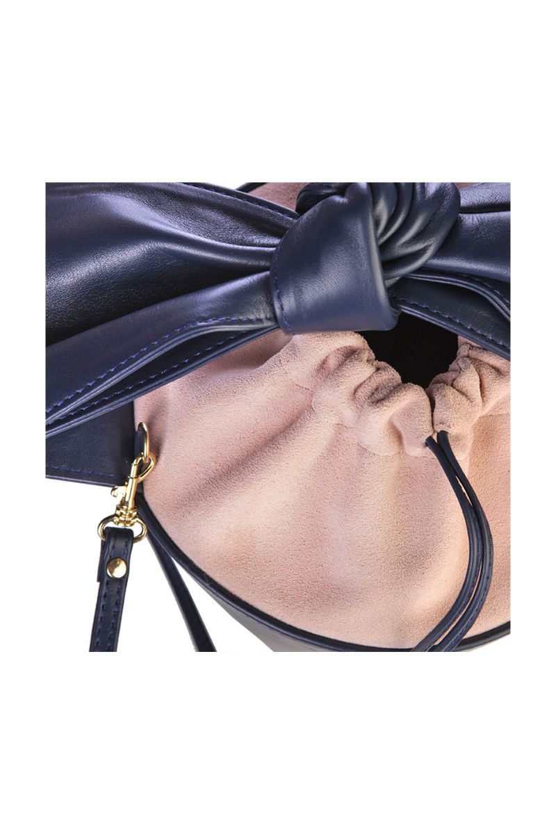 M-ishka Bucket bag is a handmade leather bag with a unique bow and a specific combination of smooth leather and velor.