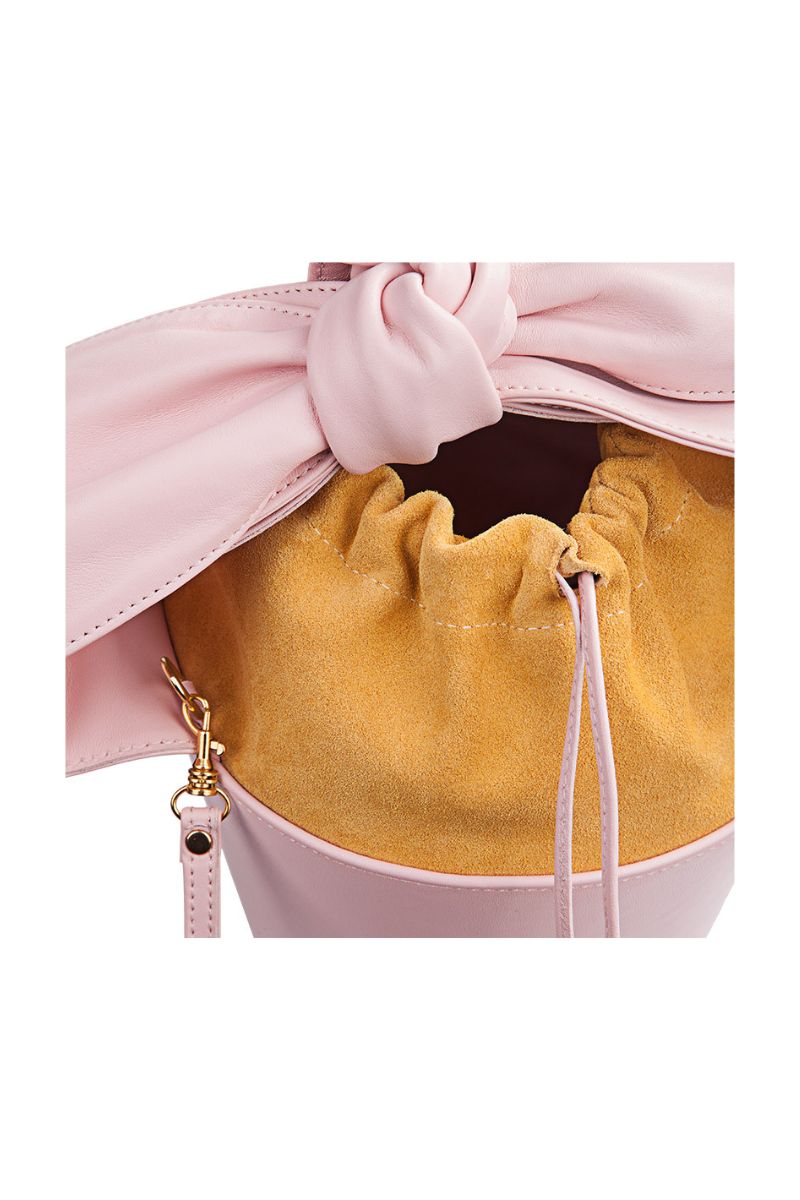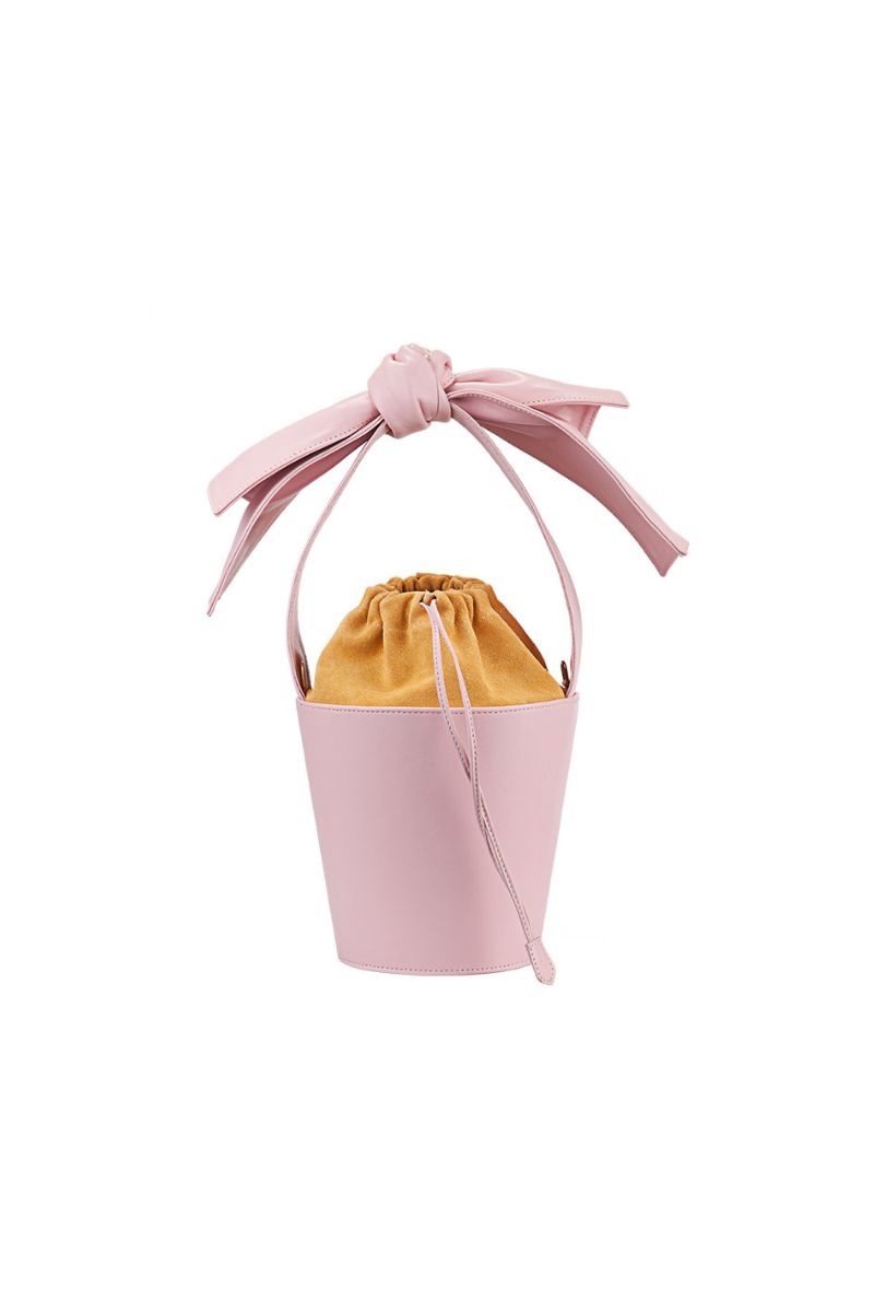 M-ishka Bucket bag is a handmade leather bag with a unique bow and a specific combination of smooth leather and velor.