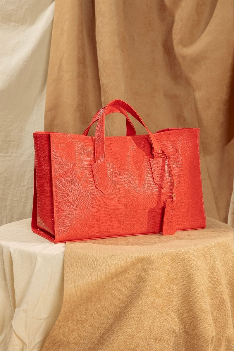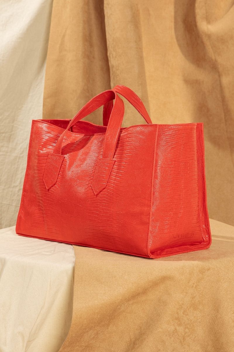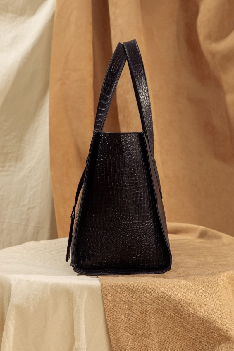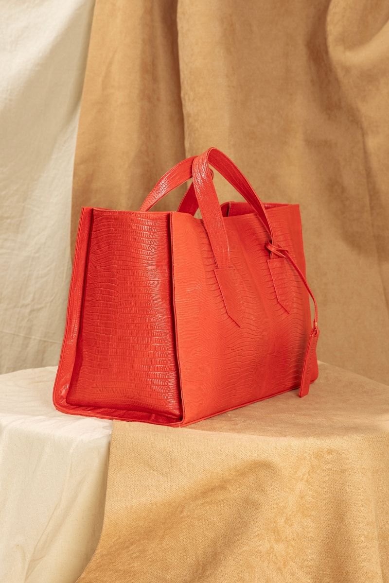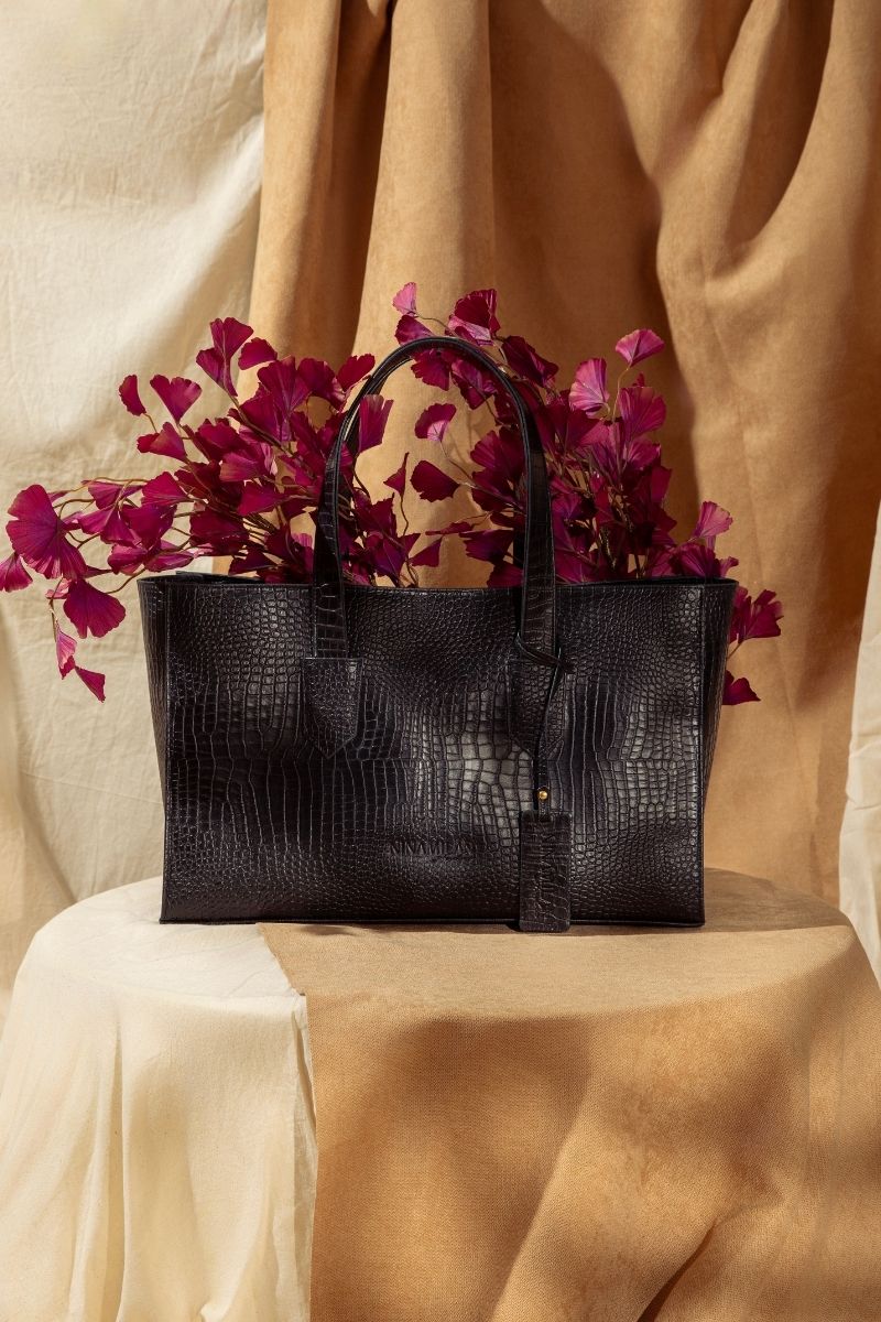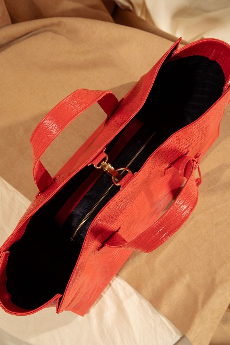Handmade croco leather bag with inner pockets and an extra toiletry bag.
